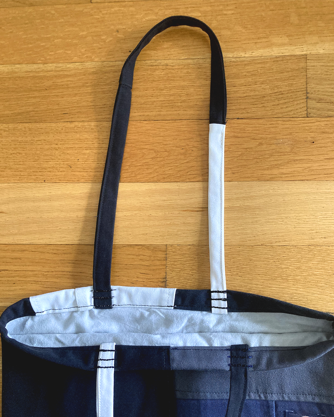 This bag is made from thrifted Dickies pants, which are rock solid.
